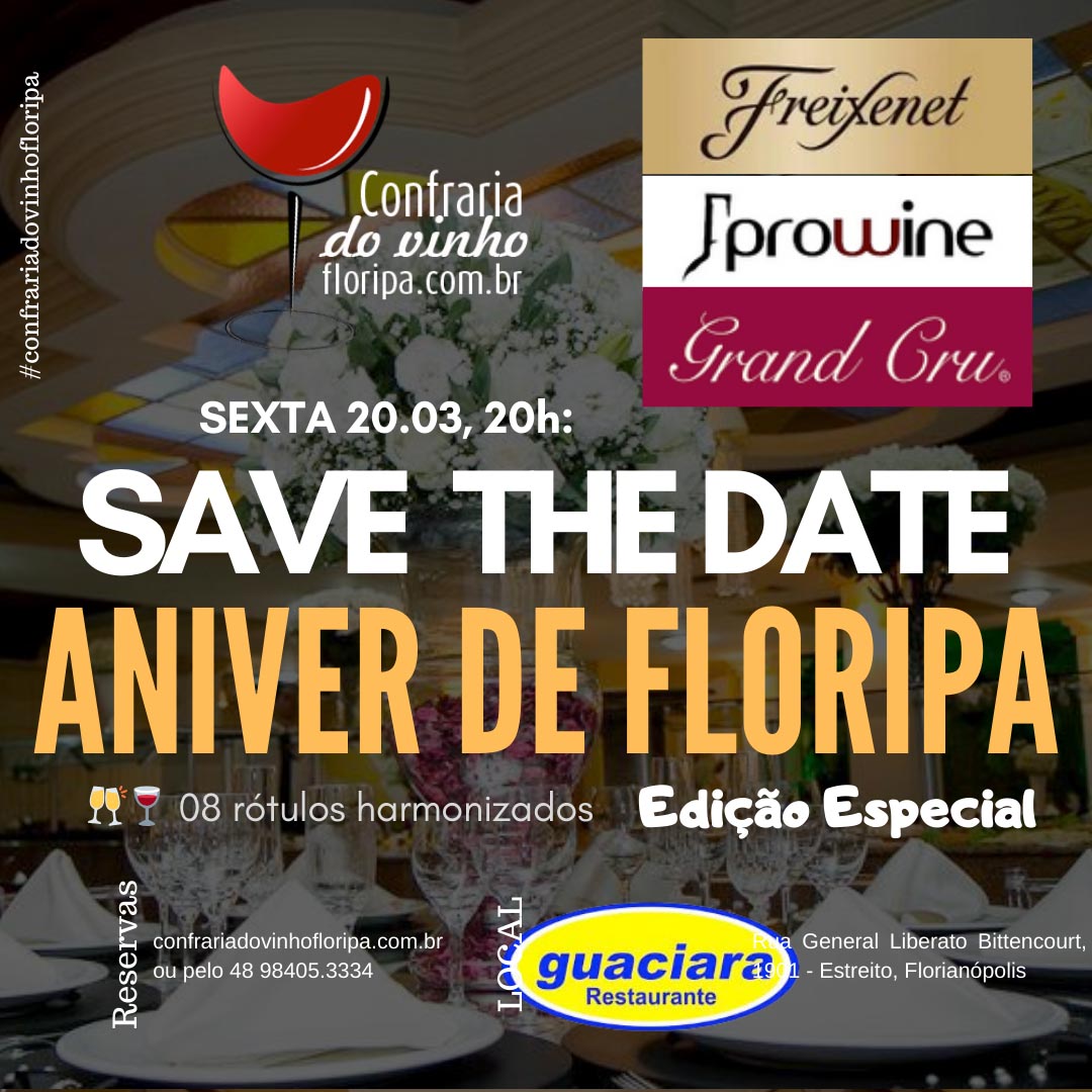 FREIXENET, GRAND CRU e PROWINE LHE CONVIDAM a Brindar conosco os 353 anos da capital catarinense! Nesta edição iremos degustar 8 novidades em vinhos e espumantes, guiados pelos Embaixadores, harmonizados com um super Menu do Chef João. Esta Mega edição será realizada pela primeira vez no Restaurante GUACIARA, conhecido pela sua gastronomia requintada.